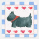 Um scottie dog adesivo alegre com corações vermelhos e cheques azuis!
