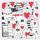 Adesivo Quadrado Black White Cute Cat Red Heart