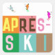 Design de esqui moderno, après-ski, em blocos coloridos e letras coloridas. Abertura de esqui alpino, estância de esqui, design de esqui. Um maravilhoso presente esportivo de inverno para um esquiador no seu círculo de amigos, colegas de trabalho ou família. Design de trabalho de arte de esquiadores retrô. Esquiadores esquiando decoração de esqui, equipe de esqui, presente de treinador de esqui.