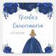 This Quinceanera sticker features faux glitter navy blue floral flowers and a beautiful princess with blonde hair and an elegant dress. This is perfect for a Quinceanera birthday party.