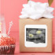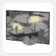 Esta imagem fora do quadro apresenta dois lírios de água delicados em matizes macios, amarelo-pálidos, destacando-se claramente contra um pano de fundo de almofadas, lírios cinza e água. As flores estendem-se para além do quadro delimitado por preto, criando um efeito dinâmico, quase tridimensional. O contraste entre os florescentes vibrantes e os subjugados arredores destaca a delicada beleza e tranquilidade da cena, evocando um senso de calma e elegância silenciosa.