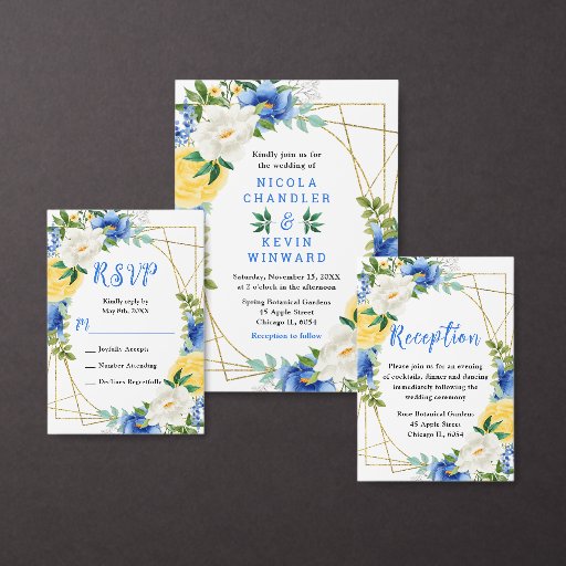 Blue and Yellow Flowers with Foliage WeddingCriado por Nicola Winyard