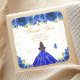 Adesivo Quadrado Blue Floral Brunette Princess Festa de aniversário