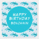 Blue Gecko Lizard Desenhando Crianças Feliz Aniversário da Praça de Aniversário. O adesivo tem óculos bonitos com manchas em um padrão. Adicione seu nome.