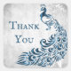 Fale seus cartões de agradecimento com este elegante obrigado de casamento de Folha Azul de Folha de Folha de Folha que você cola. O design do adesivo apresenta um fundo de cinza claro com um pavão azul vibrante com um embelezamento de vinha de folha. Papelaria de casamento, material de casamento e favoritos para festas disponíveis com este design também.