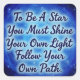 Estes adesivos brancos apresentam um vibrante impressão de óleo branco azul pintado com as palavras inspiradas Para ser uma estrela você deve brilhar sua própria luz, seguir seu próprio caminho.