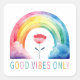 Faça o brilho dos notebooks, embalagens, laptop ou favoritos para festas com este adesivo quadrado colorido "Good Vibes Only". Com um arco-íris a aquarelas, nuvens macios e um sotaque floral solteiro, é um toque alegre para presentes, jornalismo ou espalhamento de positividade.