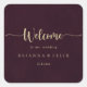 Este adesivo de boas-vindas de casamento com burgundy dourado é perfeito para um casamento rústico. O design simples e elegante apresenta uma tipografia de rico e escrita dourada em fundo de marrom. Estas etiquetas são perfeitas para bolsas de boas-vindas de hotéis e casamentos de destino.