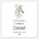 Velas, sabões ou adesivos para produtos de cozinha com uma ilustração mágica de uma bela cabeça de cavalo branca. Cercado por pequenas flores cor-de-rosa giras. Boho elegante para amantes de cavalos.
