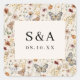 Boho Floral Wedding Square Sticker. Elegante e romântico, esta bela paleta colorida de bronzeado, marrom, ferrugem, terracota e laranja queimada é o tema de tendências para os casamentos deste ano. A relva seca russa, lindas flores, borboletas bonitinhas, e flores silvestres vintage são detalhes espantosos para o seu casamento boho-chic moderno. Encontre itens correspondentes no Boho Wildflower Invitation Suite.