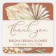 Adesivos de agradecimento de terracota boho com caligrafia moderna, folhas de palmeira secas na moda, leques de palmeira, lanças de sol e flores em um fundo de aquarela. O modelo está pronto para você personalizar com seu nome, ocasião e data ou outro texto personalizado. Este é um design de aquarela em cores terrosas quentes de terracota, bege de areia, amarelo e creme. Por favor, explore minha loja para encontrar convites e itens coordenados, na Coleção Boho Palm.