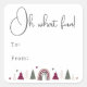 Celebre a alegria da estação com este arco-íris e corações que é divertido de um adesivo quadrado. O script editável exclusivo e chic cria um toque de charme e individualidade. Seu design simples apresenta arco-íris boêmico colorido, corações e árvores de Natal que evocam um ambiente de inverno caprichoso. Com um layout limpo e minimalista, este adesivo captura a essência de dezembro em estilo e graça.