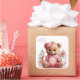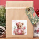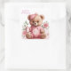 Adesivo Quadrado Boho Teddy Bear Girl Pink Bear Floral Birthday