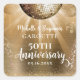 Este adesivo deslumbrante de 50º aniversário de casamento apresenta bolas de discoteca douradas brilhando em um fundo metálico dourado escovado com serpentinas de festa e glitter dourado. Perfeito para celebrar seu ano dourado. Use o botão 'Personalizar' para personalizar o produto ou adicionar texto.