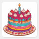 Adesivo Quadrado Bolo Colorido de Aniversário com Vela