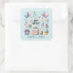 Adesivo Quadrado Bolo de aniversário feliz e bonito, adicione nome