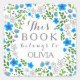 Personalizar este Bonito Fresco Personalizado Este Livro Pertence A Autocolantes com Azul Elegante Original e Flores de Cinza com Folhas Verdes. Design bonitinho. Você adiciona seu nome, o texto do "livro" pode ser alterado e substituído por outro produto no qual você deseja colocar este adesivo de nome.