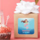 Vinhetas decorativas para os seus favoritos para festas! Ela tem uma bonito menina sereia com cabelo castanho escuro com uma estrela-do-mar rosa como acessório de cabelo, um topo verde pastel e uma cauda rosa de sereia. Ela está nadando livremente sob o mar perto dos corais. Personalize com sua mensagem de festa de aniversário.