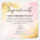 Rótulos de ingredientes com design de ouro e cor-de-rosa.