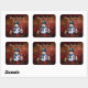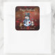 Adesivo Quadrado Bonito Snowman, uma Criança e pássaros, Red Square