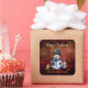 Sticker trabalhado com beleza num fundo vermelho-burguês que apresenta um boneco de neve, uma criança, um esquilo, um coruja, uma coruja e um pássaro. Esse adesivo permite a personalização de todos os textos. Adicione seus envelopes de Natal, pacotes e presentes.