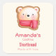 Adesivo Quadrado Bonito Urso Rosto num Biscoito de Natal Vermelho