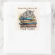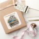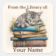 Adesivo Quadrado Bookplate com Cat Deitada em Livros