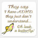 Dizem que tenho TDAH, eles não entendem... Olha, uma borboleta! - Atenção Déficit Hiperatividade Perturbação Humor Dizendo. O texto/fonte em uma cor dourada com um gráfico de borboleta amarela.