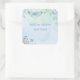Uma borboleta azul solteiro sobre um fundo azul de massa pálida e água verde com uma borda floral com uma flor rosa solteiro; com ou sem texto da sua escolha.