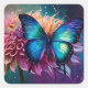 Adesivo Quadrado Borboleta azul e Dahlia