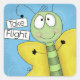 Uma doce imagem inspiradora da borboleta com as palavras "Pegue o Voo". Uma borboleta grande com corpo listrado verde e asas amarelas com espirais contra fundo azul claro com espirais brancas. Estas cores moles seriam perfeitas para o quarto da sua menina ou para um quarto de brincadeira. Design original de Christie Black of Creations do Coração.