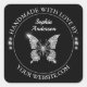 Personalize este adesivo de borboleta de diamante "Feita com Amor" com seu nome e site em fundo preto e design de círculo com texto branco. Clique em "Editar usando a ferramenta design" para alterar cores e digitar estilos.