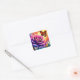Adesivo Quadrado Borboleta Monarca Rosa Roxo Floral Sunset