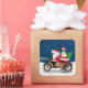 Um Papai Noel andando de bicicleta entregando árvore de Natal e cão da Fronteira Collie como presente é uma ideia perfeita de presente de Natal para alguém que ama essa raça de cachorro.