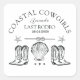 Adesivos personalizados para despedida de solteira com tema cowgirls costeiras em preto e branco com botas de cowboy e conchas marinhas são perfeitos como um tema de despedida de solteira divertido, moderno e vintage. Personalizados com seu nome e as frases "cowgirl costeira" e "último rodeio". Celebre seu chá de panela com estilo com o tema perfeito de festa country western na praia, o tema perfeito para a amante de cavalos, noiva cowgirl com tema do Velho Oeste vintage e suas damas de honra.