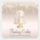 Etiqueta Chic para designers de bolo de casamento e especialistas, padarias, cozinheiros e fornecedores de refeições para eventos com brilho de ouro champagne derrubando um fundo de ouro ombre, uma ilustração de um belo bolo de casamento de ornamentado com coordenação de gelo brilhante, e seu nome de negócio em um roteiro de cinza mole. Em uma segunda linha de texto, descreva sua empresa ou adicione um número de telefone ou outras informações.
