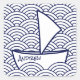 Um adesivo quadrado com um barco em um padrão de onda japonês. Personalize o adesivo com seu nome ou seu próprio texto.