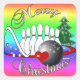 Saudações da Época com esta Feliz design de Natal para os jogadores de bolachas - com bola de boliche, pinças de boliche, uma árvore de Natal e muitas faíscas.