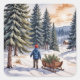 Adesivo Quadrado Boy Pulling a Sled With Christmas Evergreen Boughs