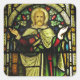Armas de cristo estendidas em bênção. Imagem de vidro europeia de arte vintage.