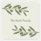 Pinheiros quadrados com ramos de oliveira aquáticas e um texto personalizável: perfeito para as cartas ou pacotes da sua família ou para um casamento. Também poderia ser utilizado para uma empresa de restauração, num restaurante mediterrânico!