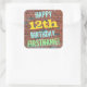 Este design de autocolante com tema de aniversário divertido apresenta uma mensagem como "FELIZ 12 BIRTHDAY, FIRSTNAME!", onde o nome pode ser personalizado. O fundo apresenta uma representação de uma parede de tijolos constituída por alguns tijolos de cor castanha avermelhada. O texto de mensagem personalizável apresenta cores como azul, amarelo e verde, e tem uma aparência inspirada pela do grafite pintado. Os adesivos como estes poderiam talvez ser dados como presente de aniversário, ou talvez utilizados como decorações numa festa de aniversário para alguém que comemora o seu décimo segundo aniversário. [~Z0000273]