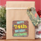 Este design de autocolante de aniversariante divertido apresenta uma mensagem como "FELIZ 74º ANIVERSÁRIO, NOME PRÓPRIO!", onde o nome pode ser personalizado. O fundo apresenta uma representação de uma parede de tijolos constituída por alguns tijolos de cor castanha avermelhada. O texto de mensagem personalizável apresenta cores como azul, amarelo e verde, e tem uma aparência inspirada pela do grafite pintado. Os adesivos como estes poderiam talvez ser dados como presente de aniversário, ou talvez usados como decorações numa festa de aniversário para alguém que comemora os seus setenta e quatro anos. [~Z0000273]