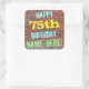 Este design de autocolante de aniversários divertido apresenta uma mensagem como "FELIZ 75º ANIVERSÁRIO, NOME AQUI!", onde o nome pode ser personalizado. O fundo apresenta uma representação de uma parede de tijolos constituída por alguns tijolos de cor castanha avermelhada. O texto de mensagem personalizável apresenta cores como azul, amarelo e verde, e tem uma aparência inspirada pela do grafite pintado. Os adesivos como estes poderiam talvez ser dados como presente de aniversário, ou talvez usados como decorações em uma festa de aniversário para alguém que comemora seus setenta e cinco anos. [~Z0000273]