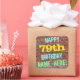 Este design de autocolante de aniversários divertido apresenta uma mensagem como "FELIZ 79º ANIVERSÁRIO, NOME AQUI!", onde o nome pode ser personalizado. O fundo apresenta uma representação de uma parede de tijolos constituída por alguns tijolos de cor castanha avermelhada. O texto de mensagem personalizável apresenta cores como azul, amarelo e verde, e tem uma aparência inspirada pela do grafite pintado. Os adesivos como estes poderiam talvez ser dados como presente de aniversário, ou talvez usados como decorações numa festa de aniversário para alguém que comemora o seu setenta e nono aniversário. [~Z0000273]