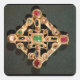 Brooch da Escola Bizantina sob a forma de uma cruz grega (pedras de ouro e precioso) situada no Museu Nacional do Bargello, Florença, Itália. O broche na forma de uma cruz grega (pedras de ouro e precioso) foi criado por volta do século 6.