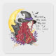 Adesivo Quadrado Bruxa com Gato Negro e Lua Crescente