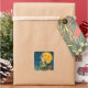 Uma bruxa muito bonito passa por uma grande lua de Colheita na vassoura. Há uma coruja na vassoura com ela. Ela parece vestida com roupas coloridas de festa e um chapéu muito não tradicional para uma bruxa. O céu é brilhante com estrelas e a lua parece estar admirando a bela visão diante dele. Esses adesivos seriam perfeitos para seus cartões de Dia das Bruxas, convites e sacos de presentes de festas.