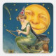 Adesivo Quadrado Bruxa Voando na Lua Passada - Vinheta do Halloween
