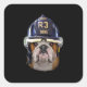 Adesivo Quadrado Bulldog Inglês Grumpy Vestindo Helmet para Bombeir
